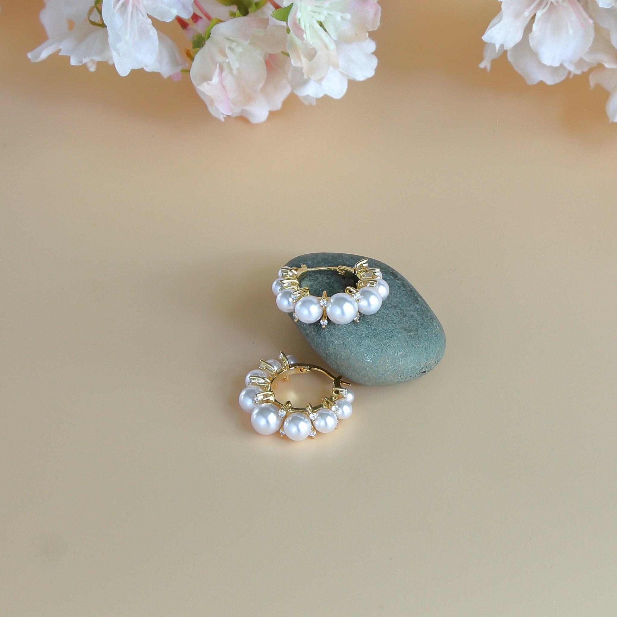 Orchid - Pearl Studded Hoop Earrings